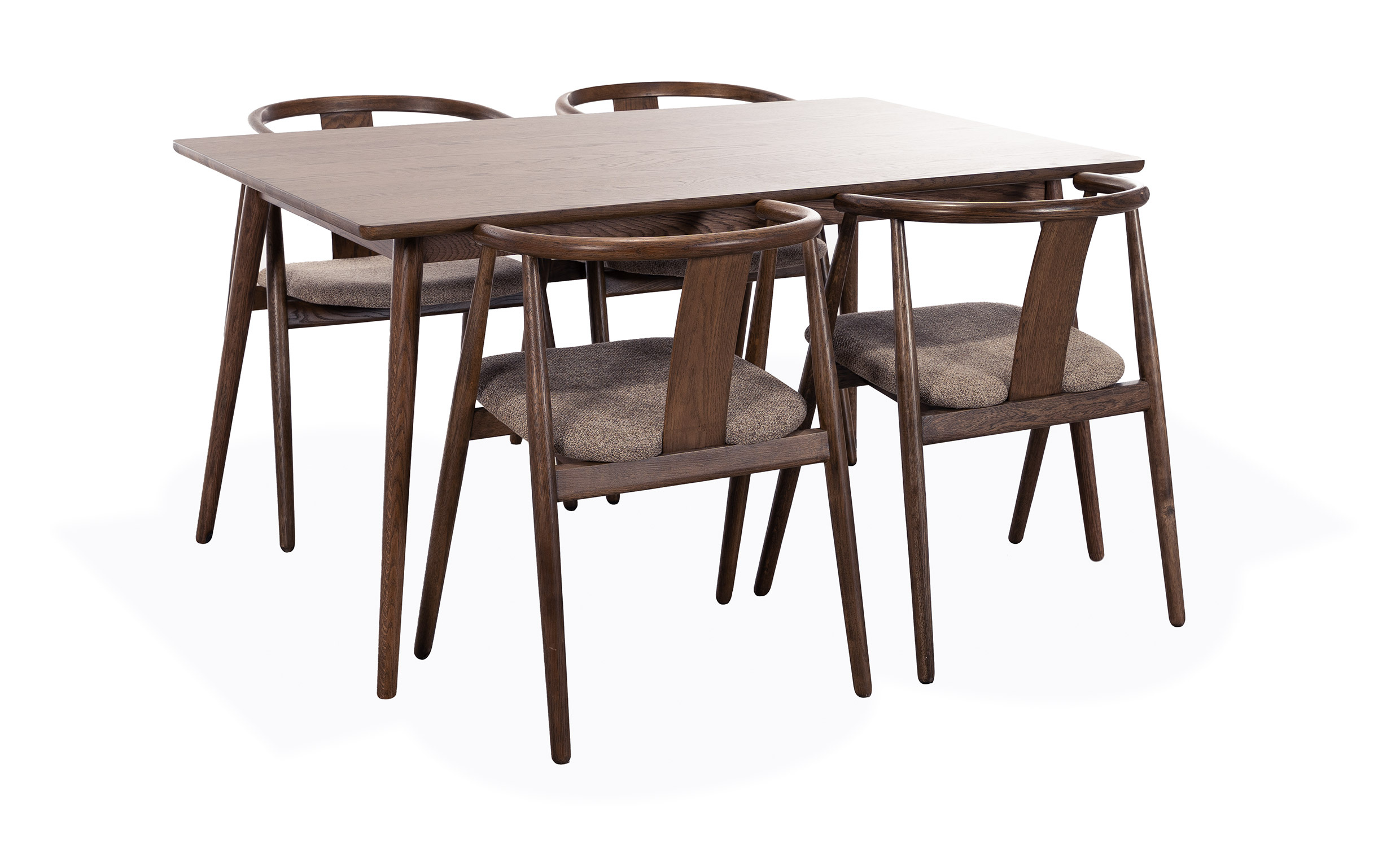 - Stolene er laget av lakkert eik og har et stoffsete av 90% polyester og 10% PAN.