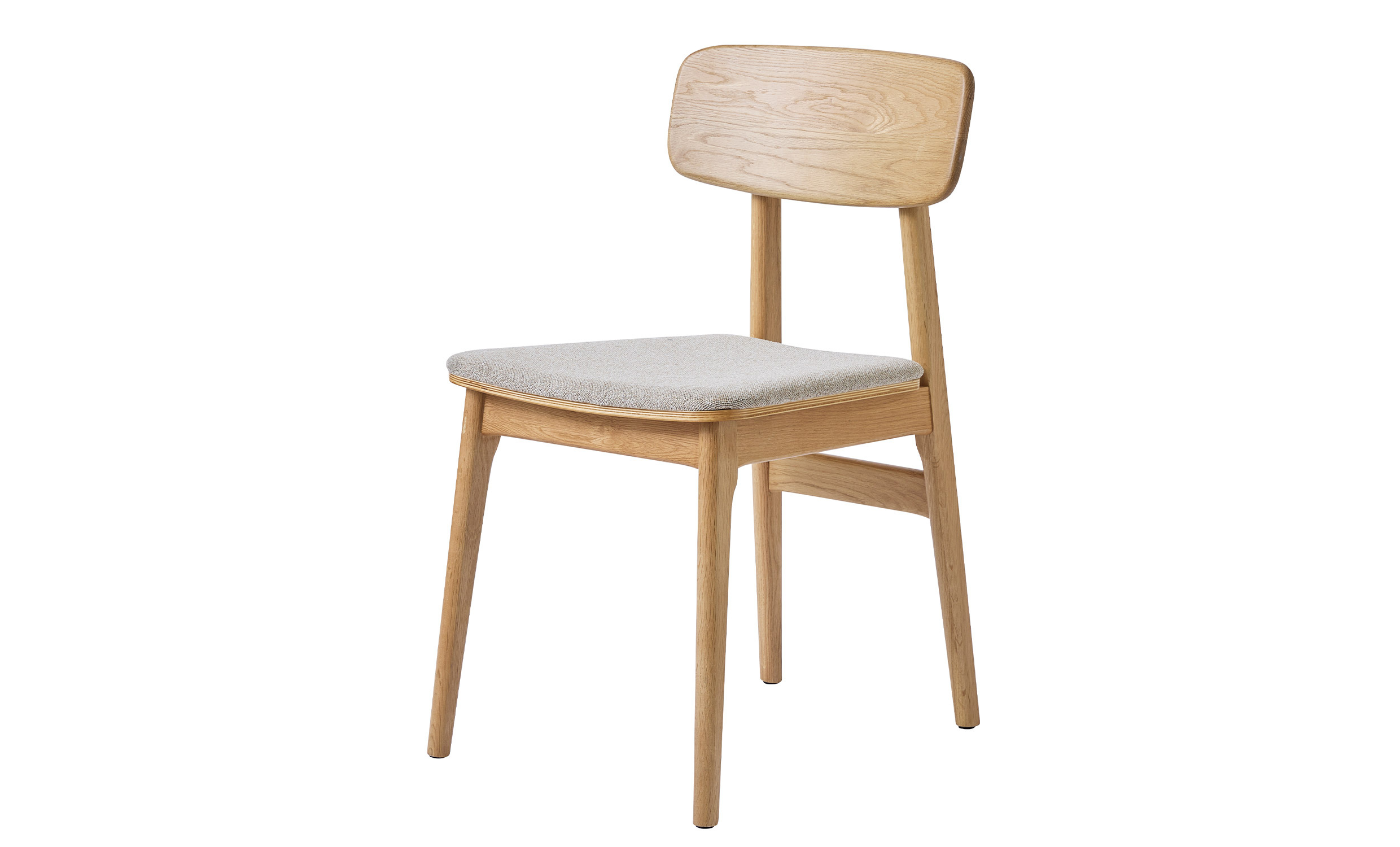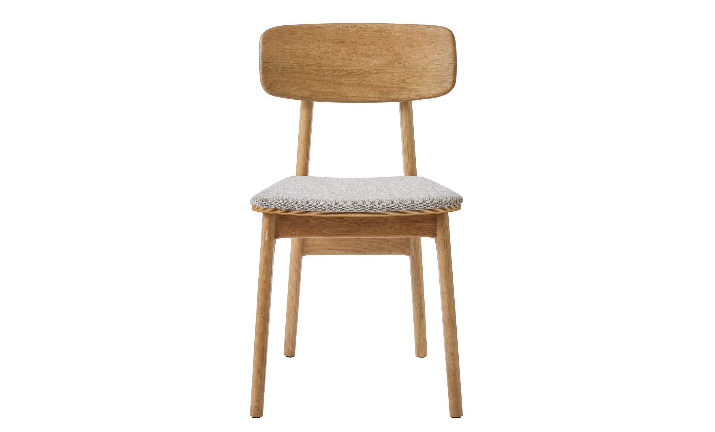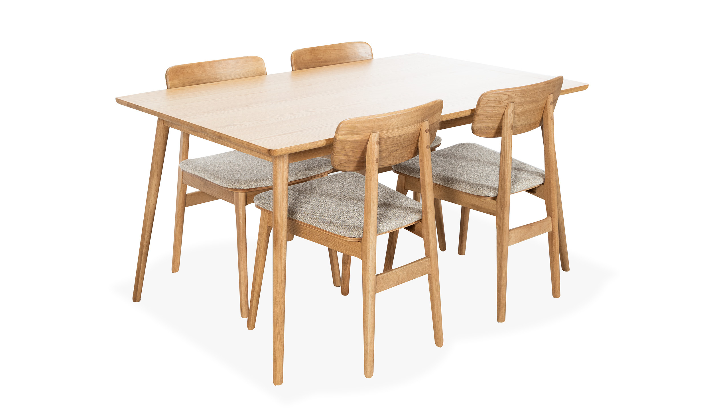 - Stolerna er laget i massiv eik, stoff av 100% polyester.