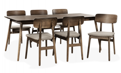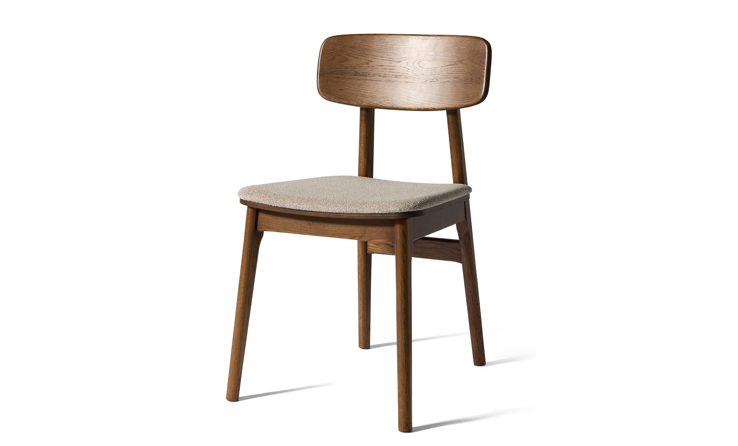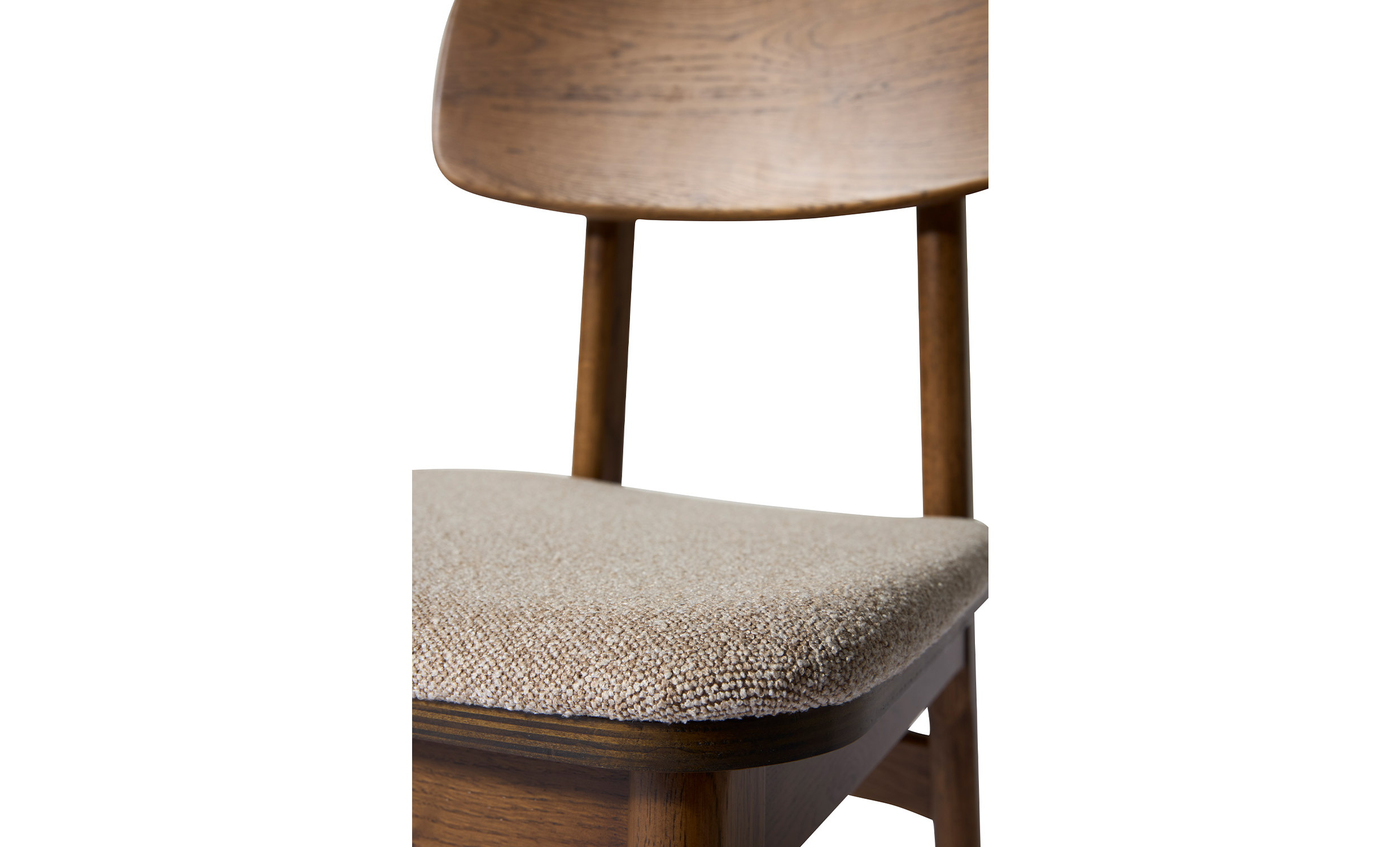 - Stolene er laget av heltre eik med et sete trukket i 100% polyesterstoff.