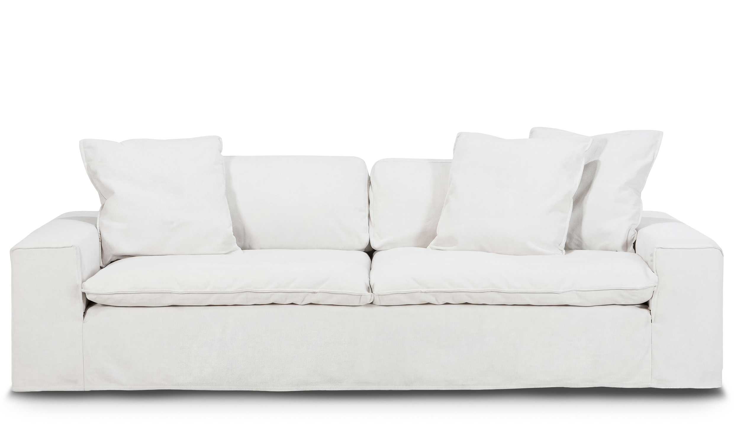 - Sete- og ryggputer samt de tre pynteputene er fylt med en blanding av polyesterfiber og strimlet kaldskum, som gir en lignende følelse av komfort som en dunsofa.