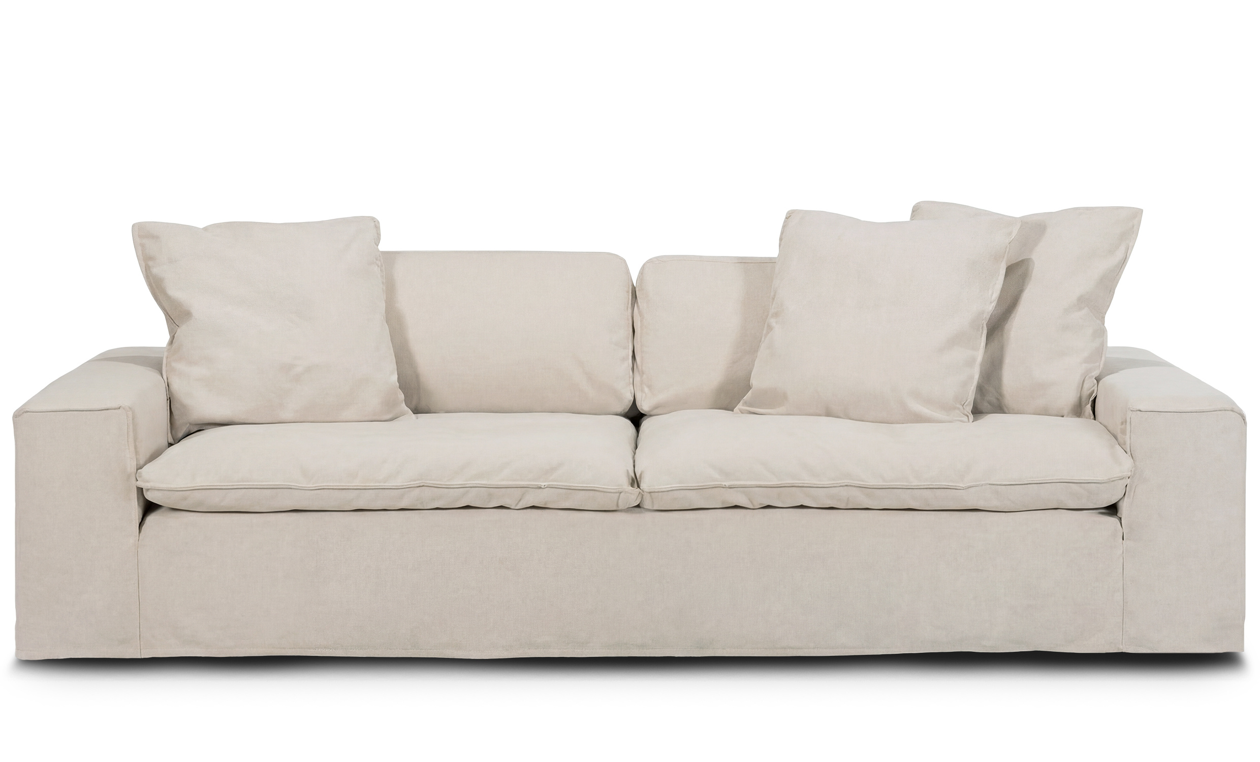 - Sete- og ryggputer samt de tre pynteputene er fylt med en blanding av polyesterfiber og strimlet kaldskum, som gir en lignende følelse av komfort som en dunsofa.