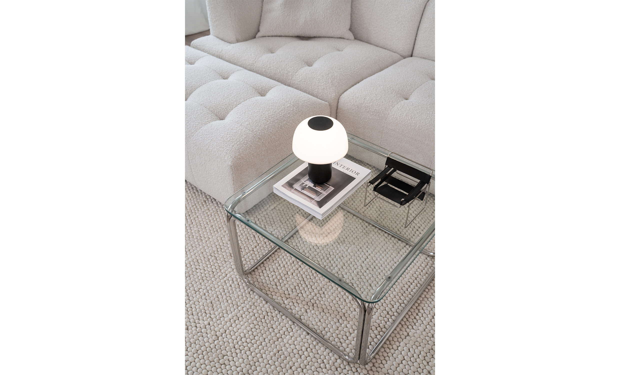 - Glassplaten festes til bunnen med en rekke sugekopper – vær alltid forsiktig når barn og dyr er rundt et glassbord, slik at det ikke skjer uhell.