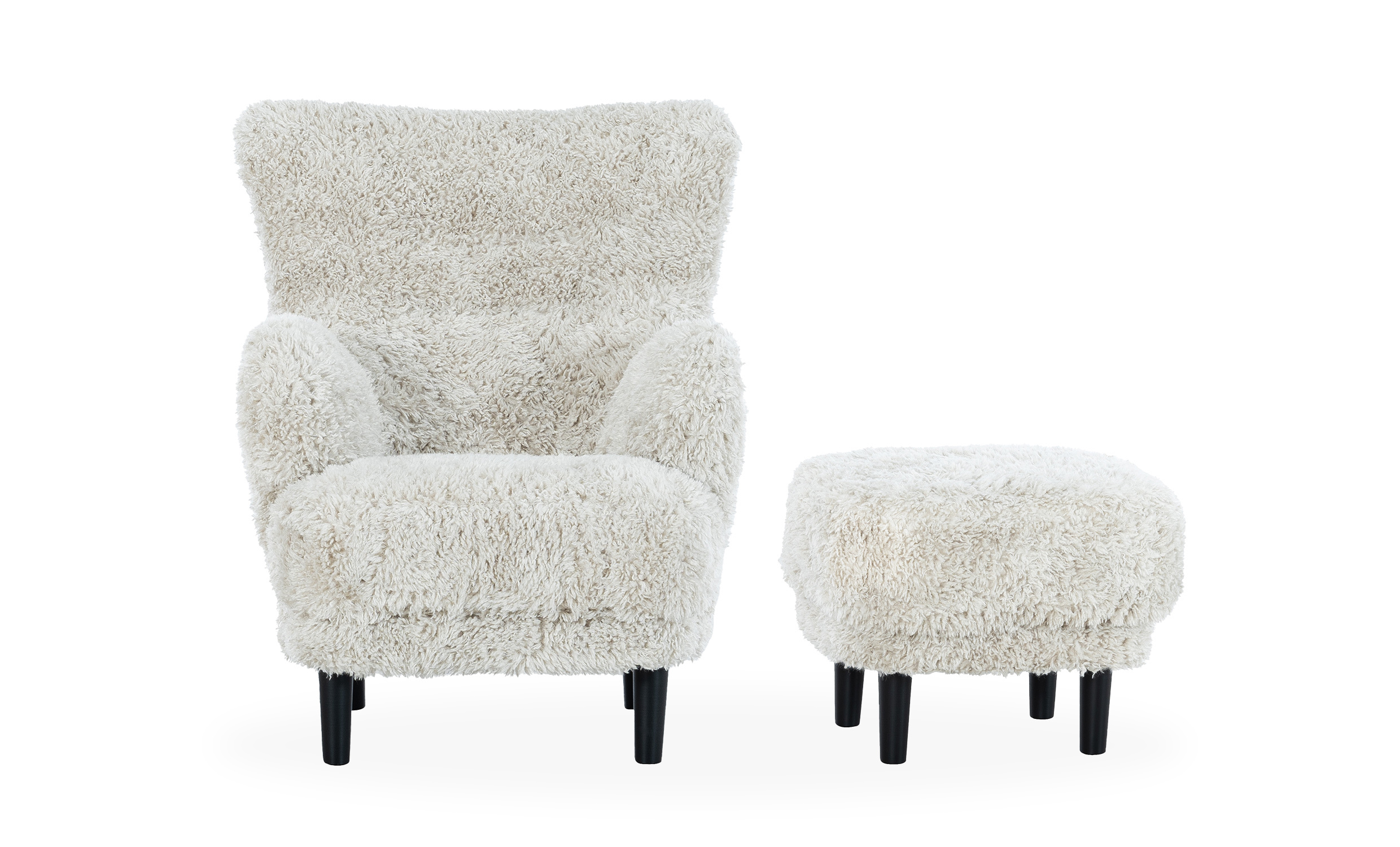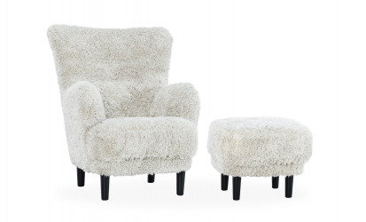 Lova er et virkelig herlig og stilrent sett bestående av en lenestol og en fotpall som passer inn i mange forskjellige hjem. De er kledd i et pælsaktig polyesterstoff med en myk og fluffy overflate som ikke bare er vakkert å se på, men også fantastisk å ta på.