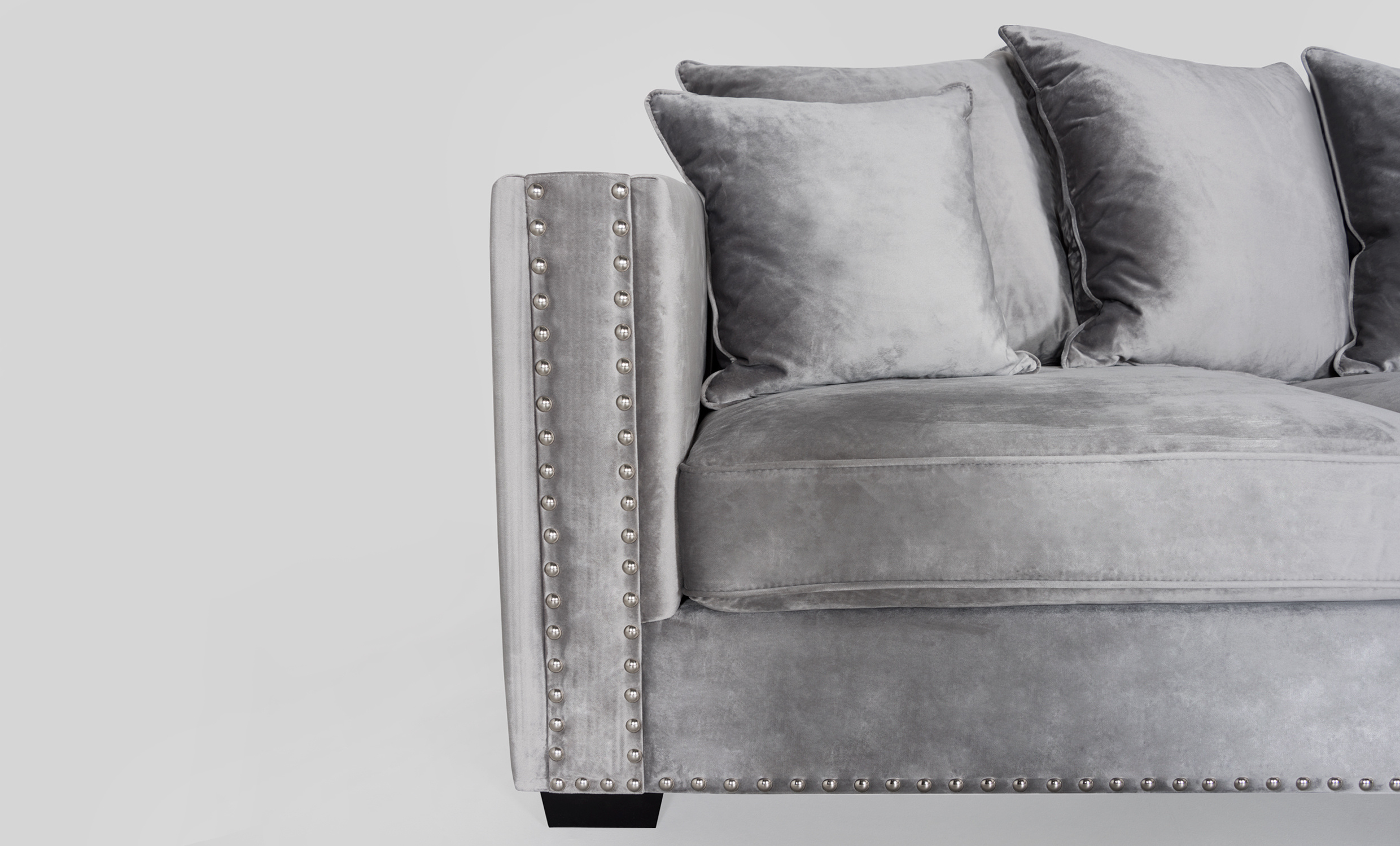 Manhattan er en sofa i en stilig modell med et glam uttrykk. Sofaens sjenerøse dimensjoner gir god komfort og plass til behagelig sosialt samvær. Det vakre fløyelsstoffet i kombinasjon med naglene gir en tøff, men luksuriøs følelse.