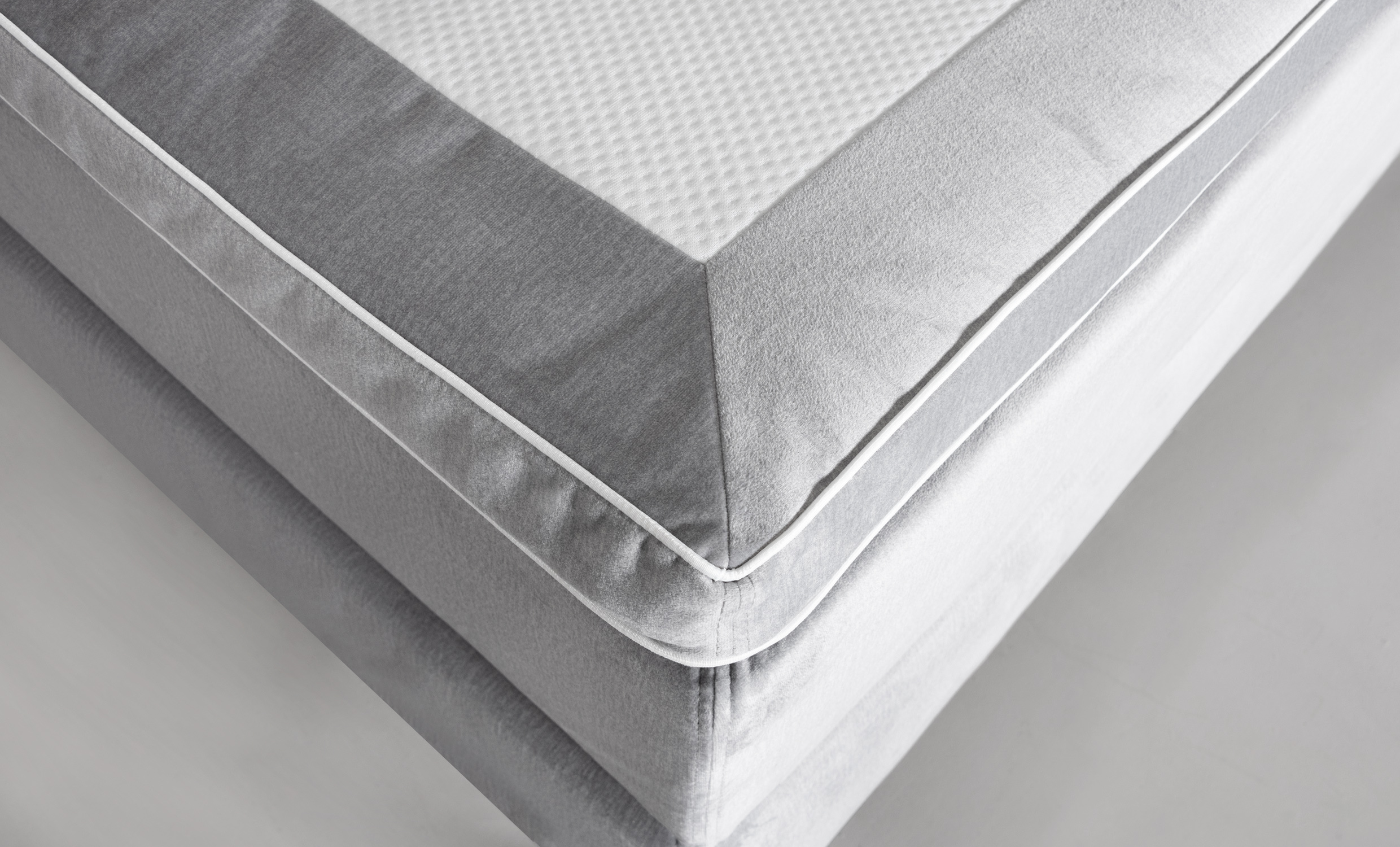 - Overmadrassen er laget av kaldskum og er hele 9 centimeter tykk.