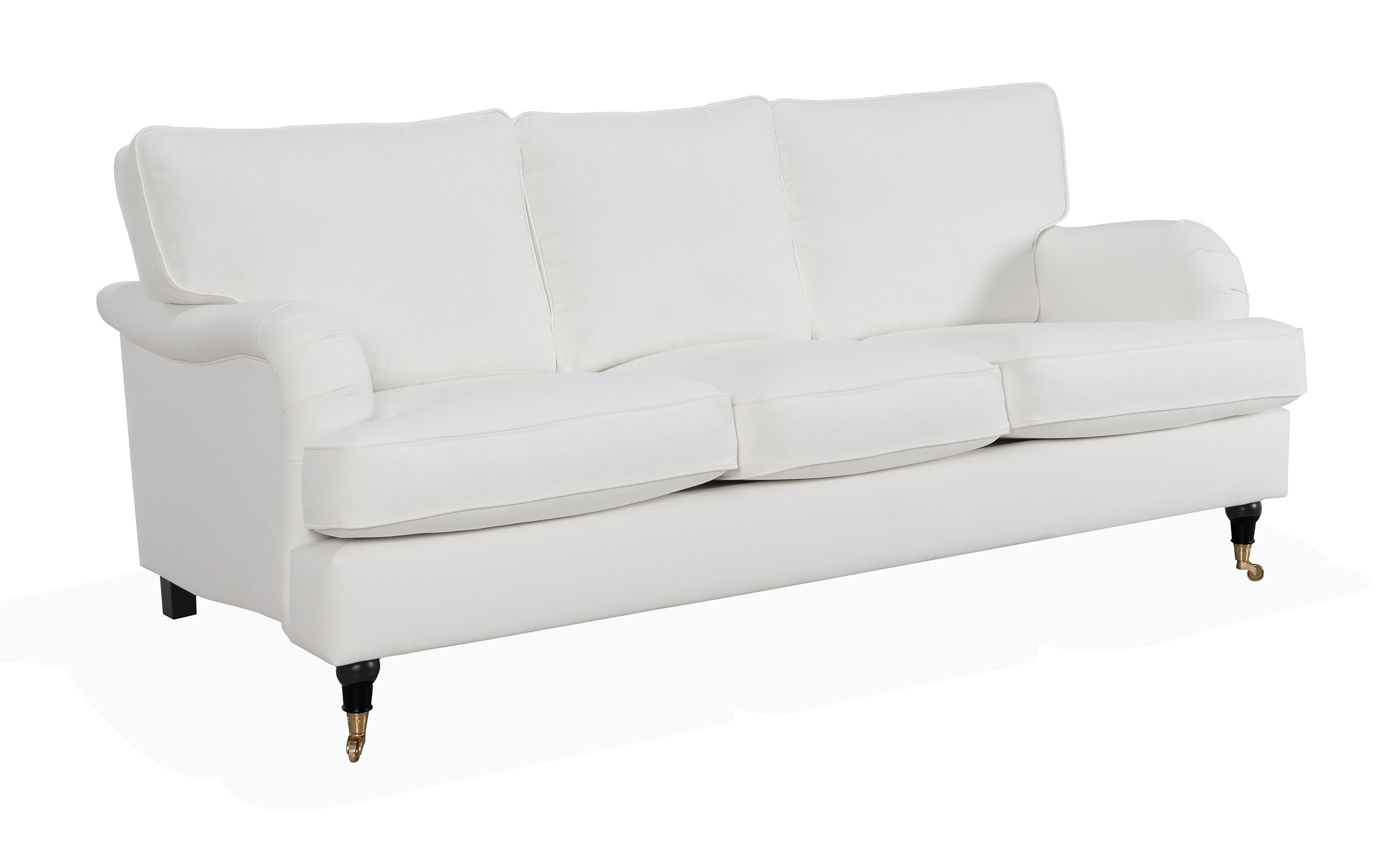 - Svarte, dreide treben med messingfargede hjul foran og svarte treben bak. Beskyttelsesplater følger med for å hindre riper på gulvet.