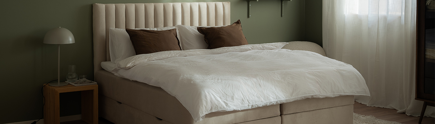 Hos oss kan du kjøpe komplette sengepakker med bredde komplett sengepakke 90 cm, komplett sengepakke 120 cm, komplett sengepakke 140 cm, komplett sengepakke 160 cm og komplett sengepakke 180 cm.God søvn får oss til å føle oss bra, og våre komplette sengepakker kan hjelpe med nettopp det. Hva er fordelen med å kjøpe en komplett sengepakke i stedet for separate deler? Vel, på den måten slipper du å sjekke at de forskjellige delene passer sammen. Sengepakkene våre settes sammen ut fra farge, stil og størrelse.