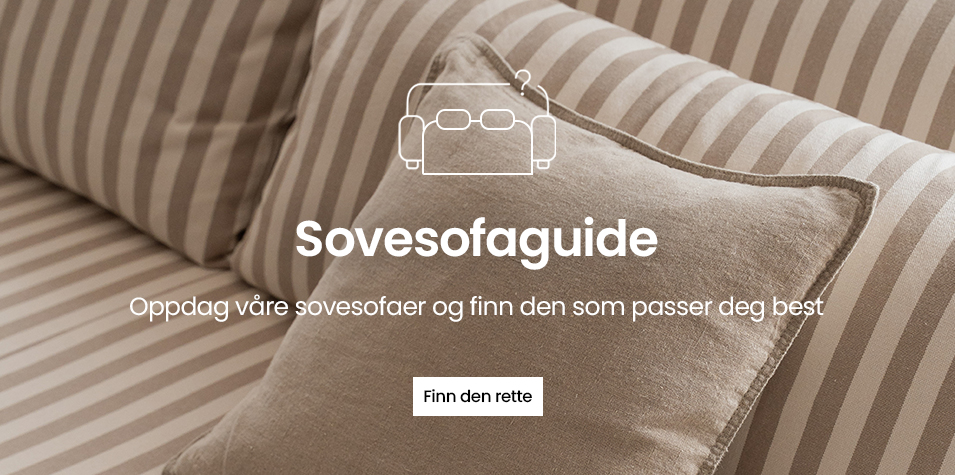 Det er vel praktisk med kombinert sofa og seng? En sovesofa er perfekt for de som trenger en eller flere ekstra soveplasser med jevne mellomrom. Størrelsen på rommet er selvsagt også avgjørende ved kjøp av sovesofa, kanskje trenger du en liten sovesofa, en sovesofa med oppbevaring eller en stor sovesofa. Vi tilbyr et stort utvalg med forskjellige størrelser på sovesofaer fra 2-seters sovesofaer opp til store sovesofaer som hjørnesovesofaer, og selvfølgelig er stilige sovesofaer viktig for oss. Før du velger sovesofa, bør du vurdere hvilke faktorer som er viktigst for deg før kjøpet. Er det viktigst for deg at det er en stilig sovesofa, at det er en billig sovesofa, at det er en stor sovesofa osv.? Kanskje trenger du en sovesofa til gjesterommet, hytta eller den mindre leiligheten. Sovesofaene våre er praktiske, rimelige og moderne. De er alle designet med stor omhu og produsert med finesse, og med tanke på funksjonalitet og kvalitet.