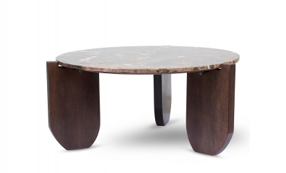 - Stilfull design med en rund bordplate i marmor og med solide ben i mangotre.